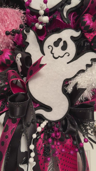Fuchsia, Black, and White Halloween Ghost Swag Wreath